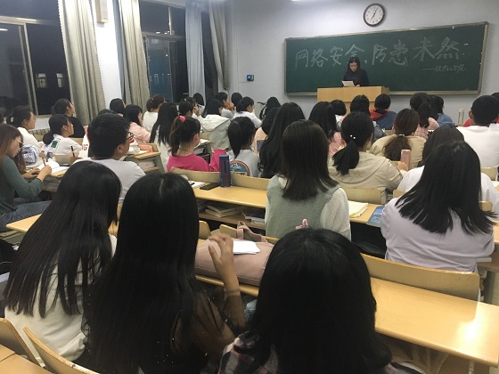 为提高学生对网络诈骗的警惕性,增强学生的安全意识,9月22日,我院在2号教学楼215教室举办网络安全主题班会。本次活动由学生科科长张然主持,17、18、19级全体学生参加。