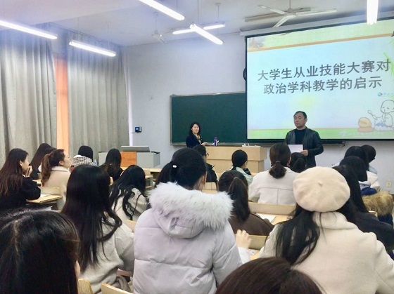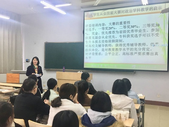 为进一步强化我院师范生从教基本技能,提升教学技能、实践能力和综合素质。11月24日,我院于2号教学楼216教室举办“大学生从业大赛技能对政治学科教学的启示”专题报告会。本次报告由博兴县第二中学教师王旭红主讲,17、18级全体学生参加。