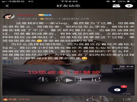 为了舒缓疫情期间同学们的压力,陶冶情操,丰富课余生活,更好地抒发内心情感,我院于4月28日通过线上的方式举办“春暖花开,与‘你’倾诉”空间视频分享活动。