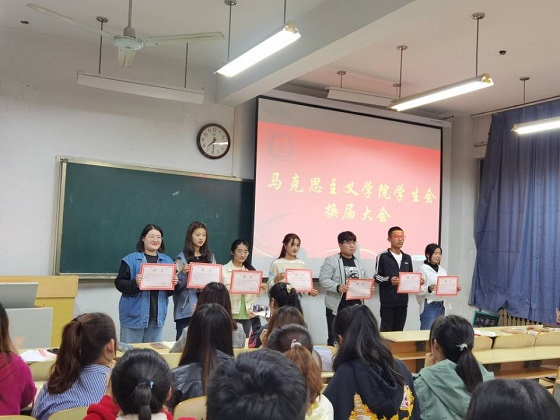 大会开始,由李帅同学宣布换届大会开始并致开幕词,表达对此次换届大会的感言。上届主席、部长分别为学生会工作作出报告,并对新任干部们提出寄语,深深表达了对换届学生会工作的建议、要求以及深深地期望。上届干部郑重地为本届干部颁发聘书,新任学生会主席、部长对本次换届大会发表感言,无一不表达出对学生会的责任感。尚璐璐对此次学生会换届大会总结,表达了对同学们深切的期望,鼓励同学们要更加自信努力,共同为我院这个大集体献出自己的一份力量。