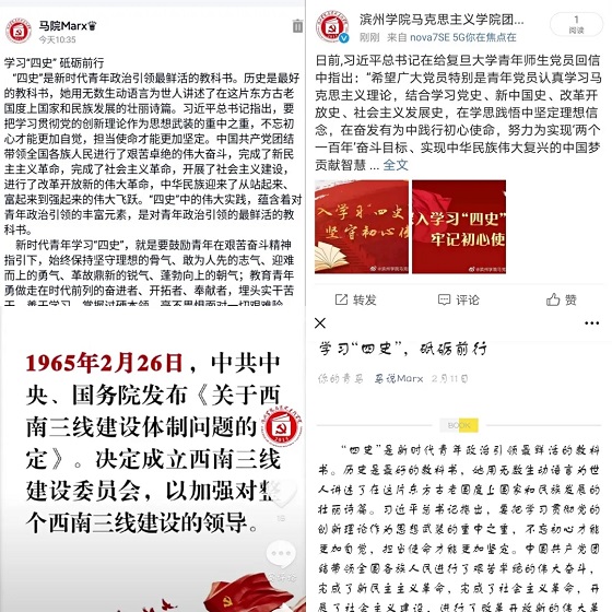 立足专业优势,推动社会发展。我院的同学们从自身实际出发,认真学习专业知识,夯实自身理论基础,与此同时,我院的同学们依托本院理论宣讲团,运用新媒体平台,积极进行“四史”理论宣传教育,自觉承担社会责任,做社会主义文化的传播者。