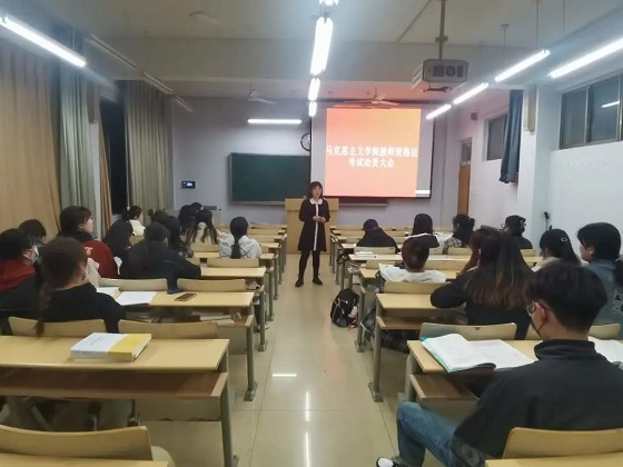 为提振学生考试信心,增强学生诚信考试意识,推动优良校风学风建设,3月12日晚,我院在2号教学楼215教室开展教师资格证考试动员大会,全体参加教师资格证考试的同学到会学习。