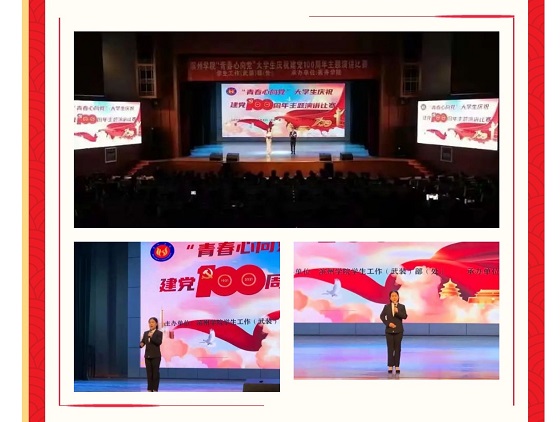 本次演讲比赛,我院学生李瑞瑞积极报名参加,利用课余时间认真准备,最终冲进总决赛,发表了主题为《我心向党》的激情演讲。演讲过程中,李瑞瑞同学紧扣党史、新中国史、改革开放史、社会主义发展史以及优秀共产党员的先进事迹,充分抒发了对党、对祖国、对中国特色社会主义事业的忠诚热爱。经过激烈的比拼,李瑞瑞同学最终获得三等奖的优异成绩。