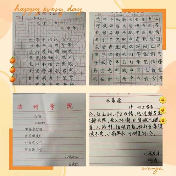 活动伊始,负责人在班级群里积极宣传本次活动,说明了活动的要求和内容,鼓励同学们踊跃报名参加,使同学们对本次活动有了明确的认识。随后,同学们利用课余时间完成书法作品并按时上交作品。29日,在215教室进行优秀作品评选活动,评分小组本着公平公正的原则对所有作品进行评分并公布获奖人员名单。最后,获奖的同学们一一上台展示自己的作品。一张张书法作品无一不凝结着同学们书写的用心和规范,他们的作品隽秀挺拔、行云流水、刚劲潇洒,展现了同学们的优秀风采,同学们在欣赏作品的过程中受益匪浅。中华文化五千史载,一撇一捺,笔笔写满中华文化;一点一横,字字勾起民族自信,同时倡议同学们认真书写,让我们的笔端都洋溢着正气优雅的翰墨情怀,让笔墨宝卷的千年文化在我们的笔尖流淌传承。“读书当努力,写字莫糊涂。”