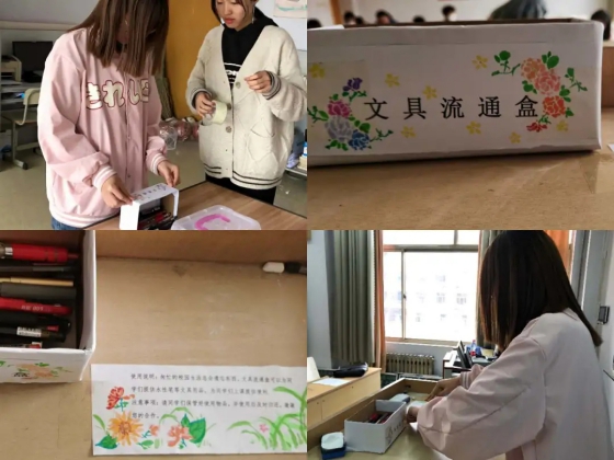 为了帮助上课忘记带文具或上课过程中文具发生损坏的同学,我院学生会在教室门口设置文具流动盒,并在盒中放入不同种类的文具用品。颜色多样,种类齐全,得到同学们的一致好评,体现了“小文具、大作用”的标语,以便学生以更方便的方式上课,更加轻松的记录。