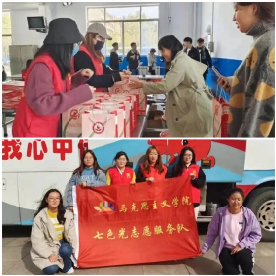 我院“七色光”志愿服务队的志愿者们在活动前期积极学习献血知识,参加志愿培训。活动现场为献血的同学提供糖果和热水,提供热情周到的服务,为本次献血活动的有序开展,做好后勤保障。