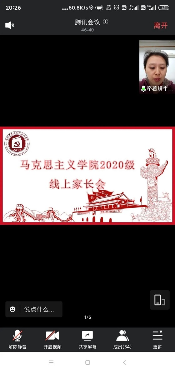 随后,老师在会上向家长传达学校和学院授课相关工作安排以及疫情防控的重要性,希望家长积极配合学校的疫情防控工作。同时,老师表示“隔屏不隔爱”,虽然隔着屏幕,却能深深地感受到家长们对此次家长会的高度重视,并表达了对家长们的感谢。在整个会议过程中,家长们聚精会神,仔细聆听,加深了家校联系。会议最后,家长们积极与老师进行线上互动,各位家长提出了自己关心的问题,就学生的学习情况与老师进行了深入的交流,老师针对这些问题给出了仔细专业的回复。