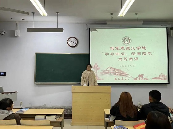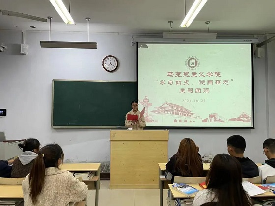 为了使学生在实践中坚定理想信念,在奋发中践行初心使命,为实现“两个一百年”奋斗目标和中华民族伟大复兴的中国梦贡献力量,10月19日,我院团支部开展了“学习四史,爱国强志”主题团日。此次活动由陈蓬萱主持,21级全体学生参加。