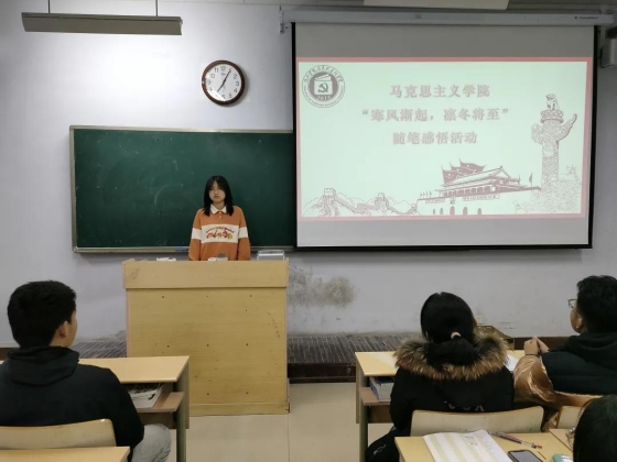 为了让学生关注生活中的点点滴滴,记录冬日的美好生活,培养健全的人格,发现校园冬季的美丽风景,11月30日,我院于7号教学楼407教室举办“寒风渐起,凛冬将至”冬季随笔感悟活动,2021级学生积极参加。