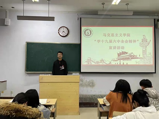 为进一步深入学习党的十九届六中全会精神,提高学生思想觉悟,增强学生对国家政策、方针的理解与关注。12月2日,我院于7号教学楼407教室举办“学习党的十九届六中全会精神”主题宣讲活动,此次活动由2021级全体学生参加。