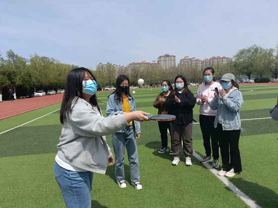 活动前期,各班文体委员在班内进行宣传,激发同学们的兴趣,调动同学们参与的积极性。4月13日上午,在文体委员的带领下同学们在小足球场集合。活动开始,21级文体委员介绍本次活动的主要项目,提醒同学们注意防疫安全。活动过程中,各宿舍自成一队,逐一展示本队的队名与口号。同学们首先进行了热身活动——颠乒乓球,欢笑声迅速将运动场点燃。