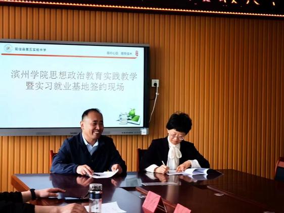 为深化教育互联,推动人才培养与就业有机联动、人才供需有效对接,5月6日,我院赴阳信县第五实验中学、温店镇中心小学访企拓岗,参观考察,并进行滨州学院思想政治教育实践教学暨实习就业基地签约仪式。我院副院长王勇军、学生科长尚璐璐、正科级秘书刘川出席。